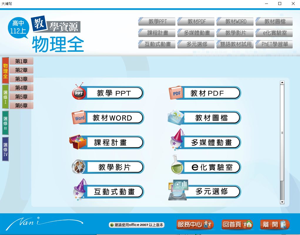 版 物理科(全、選修I、選修III、選修IV) 教學光碟