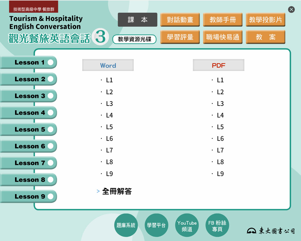 、教學光碟 三民東大版 觀光餐旅英文 第3冊