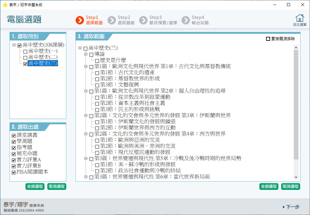 112學年上學期 高中命題光碟 泰宇版 歷史科(一、二、三)(108課綱)題庫光碟
