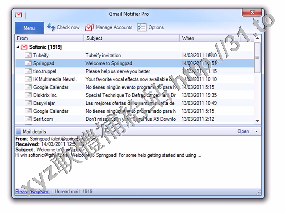 • Gmail Notifier Pro v4.6.2 Keygen Portable 英文正式版(電子郵件管理軟體)