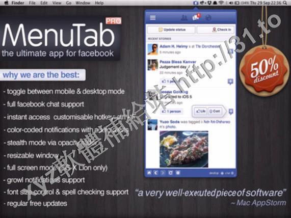 • MenuTab Pro for Facebook v4.1 MacOSX 英文正式版(Facebook 快速訪問軟體)