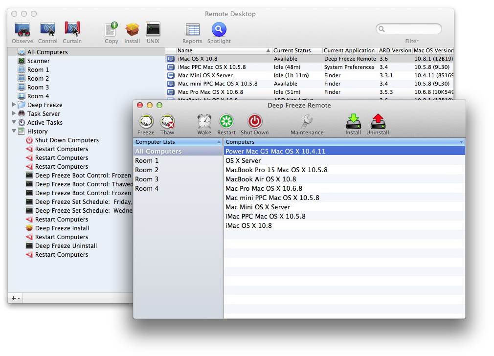 Deep Freeze Mac can be deployed and controlled with Apple Remote