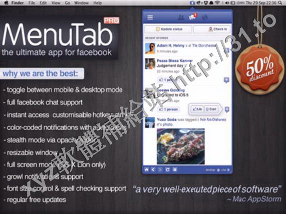 • MenuTab Pro for Facebook v4.3 MacOSX 英文正式版(Facebook 快速訪問軟體)