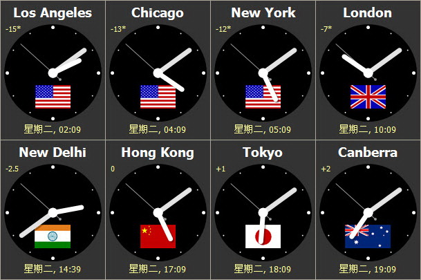 這個世界時鐘程式可以顯示出多個不同時區的當前準確時間,時鐘背景可以進行定製圖案