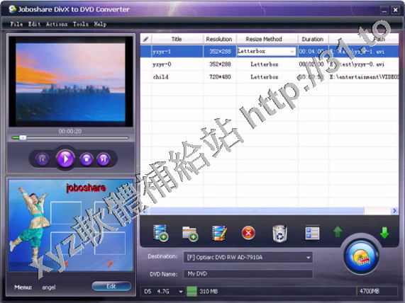 Joboshare DivX to DVD Converter是一款強大的DVD視頻製作工具,可以將AVI, XVID,